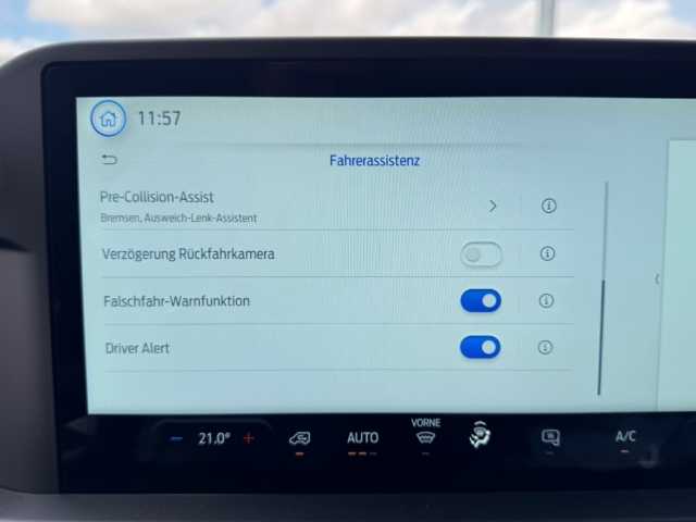 - Technologie-Paket 2: Ford Audiosystem mit 13-Zoll Multifunktionsdisplay und Ford SYNC 4, Pre-Collision-Assist, Müdigkeitswarner, Verkehrsschild-Erkennungssystem, Falschfahrer-Warnfunktion, Fahrspur-Assistent inkl. Fahrspurhalte-Assistent, Park-Pilot-System vorn und hinten, Geschwindigkeitsregelanlage, Intelligenter Geschwindigkeitsbegrenzer mit Tempolimit-Anzeige, Rückfahrkamera